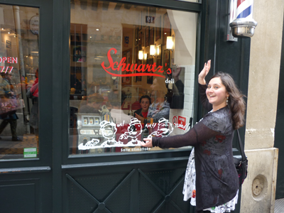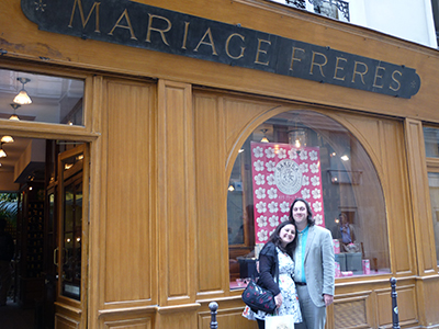 For Amy’s birthday, Ollie gave her a pair of Eurostar tickets and a walking tour guidebook to Paris. They took their trip over the Easter weekend, finding an extraordinarily well-located and affordable hotel near the Sorbonne (we're happy to provide you with details, just send us an email). They woke up very early in the morning on Maundy Thursday (the day before Good Friday for those of you who are not Christians or Early Christian scholars) and hopped on their train to begin their Parisian adventure. On Good Friday, they set off for Shakespeare and Company, the famed English-language bookshop on the Left Bank. From there, they found their way to Notre Dame, where they watched the faithful perform the Veneration of the Crown of Thorns. Next they went to the Shoah Memorial, where they located the names of at least two members of Amy’s family who had been deported from Vichy France. In need of a lift after the somberness of Notre Dame and the devastation of the Holocaust museum, Amy and Ollie decided to go for a cup of tea and a snack at famous French tea house Mariage Frères, stopping to take a picture outside of Schwartz’s Deli on the way.